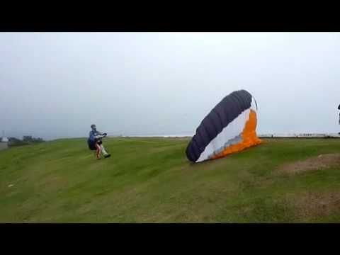 The take off at Sao Conrado, Rio is absolutely incredible. There's no room for error as you've only got four steps before take off and the cliff! There's a guy up there who will set up the wing and all you have to do is connect up and wait for the go ahead to take off. About 20 feet above us was the launch ramp for the hang glider pilots. You need to shout up to them to make sure they're not taking off as you launch otherwise you'll have a tangled mess falling down the cliff!